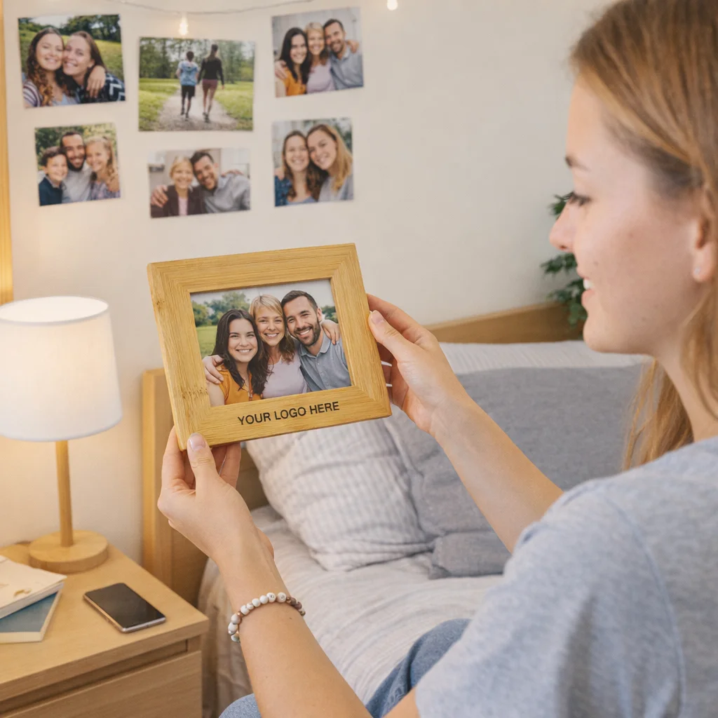 Imagine your clients unwrapping a beautifully crafted gift that not only showcases their cherished memories but also reflects your brand’s commitment to quality and sustainability. The 6×4 Bamboo Photo Frame is a stylish addition to any home or office, made from natural bamboo that adds a touch of elegance to any space. This versatile frame can display photos in both portrait and landscape orientations, making it a perfect fit for various settings.