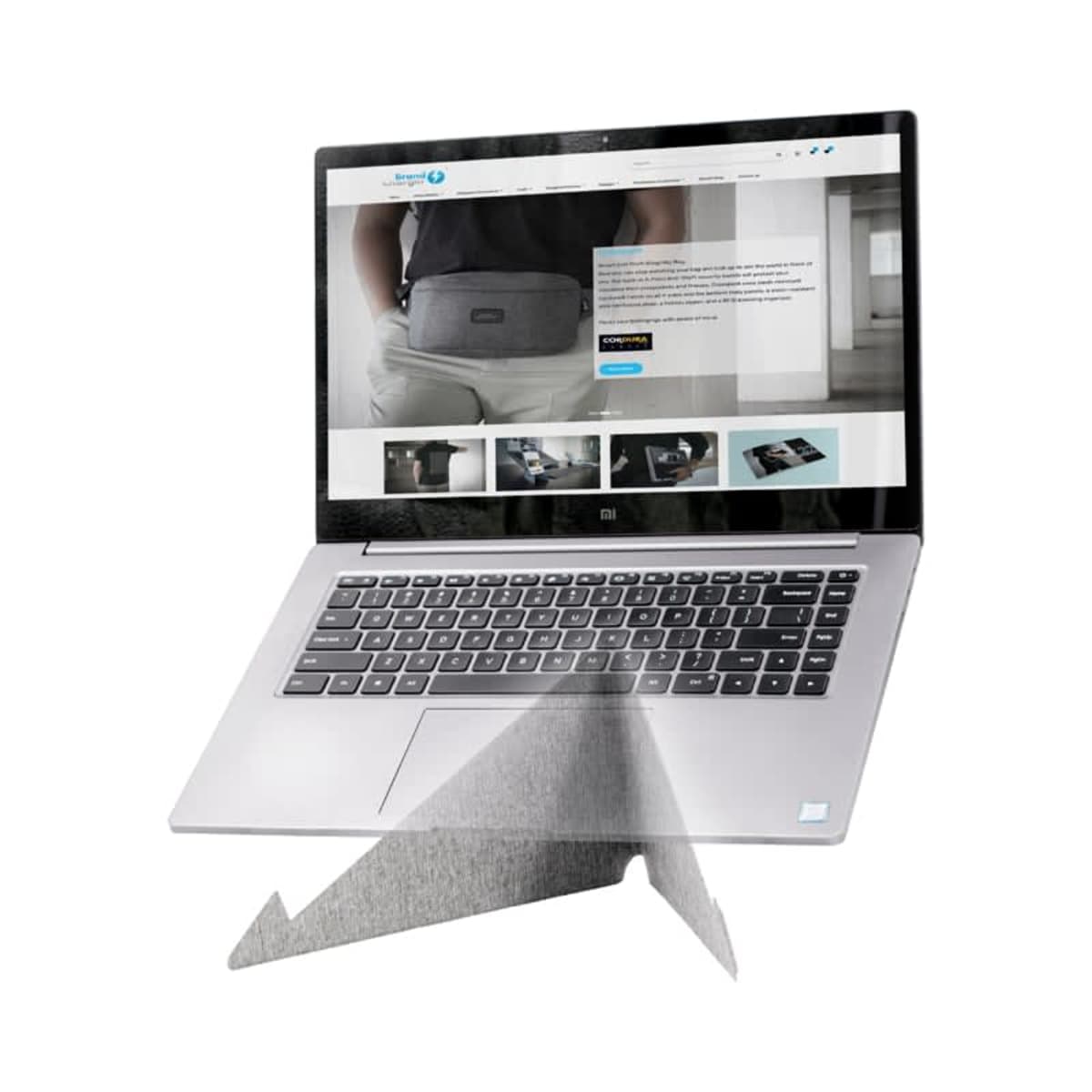 The Ascend Eco laptop stand is a compact, foldable riser made from recycled PET bottles to give users a more comfortable workstation whether at events, in the office, outdoors or as a corporate gift. It lifts a laptop by 14 cm to reduce neck and shoulder strain, and folds flat to fit into a bag — useful for flexible work setups and branded gifting programs. Brand: Accent.