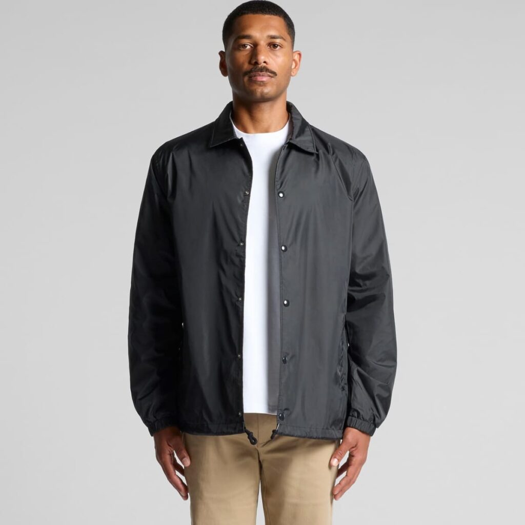Picture your crew stepping out in style, showcasing a unified look that speaks volumes about your brand. The Coach Jacket is the perfect blend of functionality and fashion, designed for those who appreciate quality outerwear. This lightweight jacket features a classic collared design and snap dome closure, making it an ideal choice for both casual outings and professional events. With two side pockets and elastic cuffs, it offers practicality without compromising on style. Plus, the drawcord hem allows for a customizable fit, ensuring comfort for everyone.