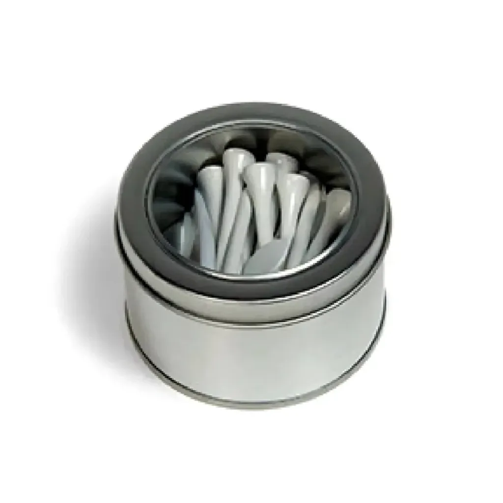 Crafted from durable metal, the tin features a convenient clip-on lid with a clear plastic window, allowing users to see the contents inside. Each tin comes packed with twenty wooden tees in a variety of vibrant colors, along with two plastic ball markers and a plastic pitch repairer. This comprehensive set not only enhances the golfing experience but also reinforces your brand’s presence in a memorable way.