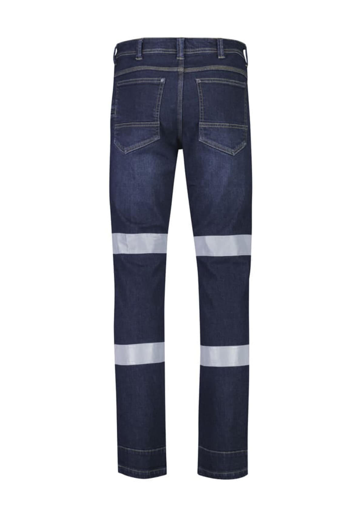 The BioFlex Motion Jean, a durable and comfortable option for your promotional needs. These jeans feature Bio Motion stretch tape for increased visibility and comfort, allowing for easy movement throughout the workday. Made with a stretch fabric that moves with you, these jeans are reinforced at key stress points for increased durability. The modern straight leg fit and five pocket styling make these jeans both stylish and practical. With Syzmik branded rivets, enzyme washing, and a metal zipper, these jeans are sure to impress.