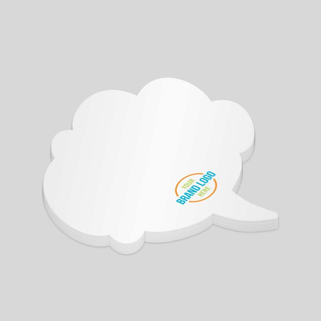 - Sticky note set in a distinctive cloud talk shape, perfect for creative branding.