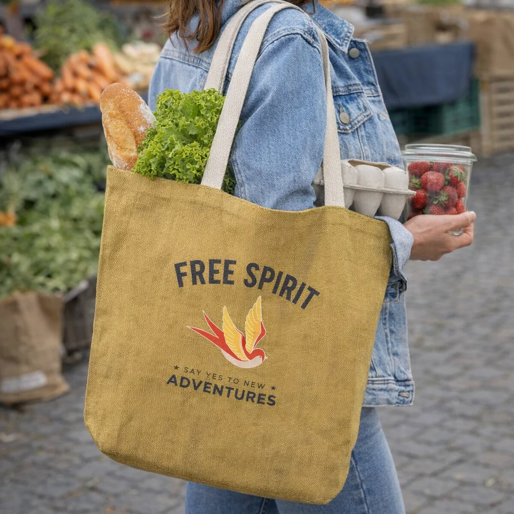 Imagine your next community event or trade show, where every attendee is carrying a stylish Gemini Jute Shopping Bag. This large jute tote bag is designed not just for looks but also for functionality, featuring strong cotton webbing handles that ensure comfort while carrying. The gusseted base enhances its carrying capacity, making it perfect for everything from groceries to promotional materials.