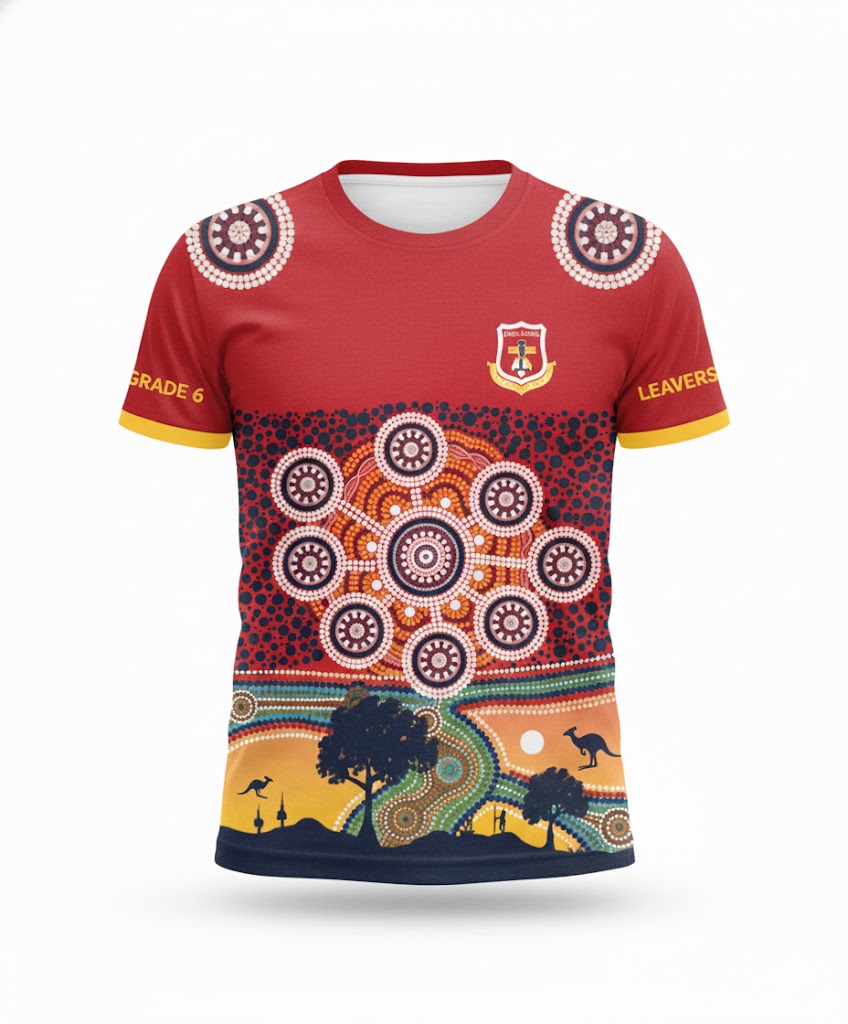 Grade 6 School Leaver Tees are custom-made-to-order shirts designed for edge-to-edge branding across the garment. They can be produced using dye sublimation and are suitable for custom team tees and school leavers programs that want bold, colour-rich designs.