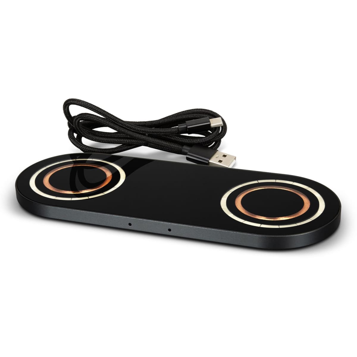 Refined and efficient, this dual wireless charger brings order to daily charging routines. With two charging pads delivering up to 15W and 10W, it powers two devices at once while maintaining a sleek, premium presence on any desk or bedside.