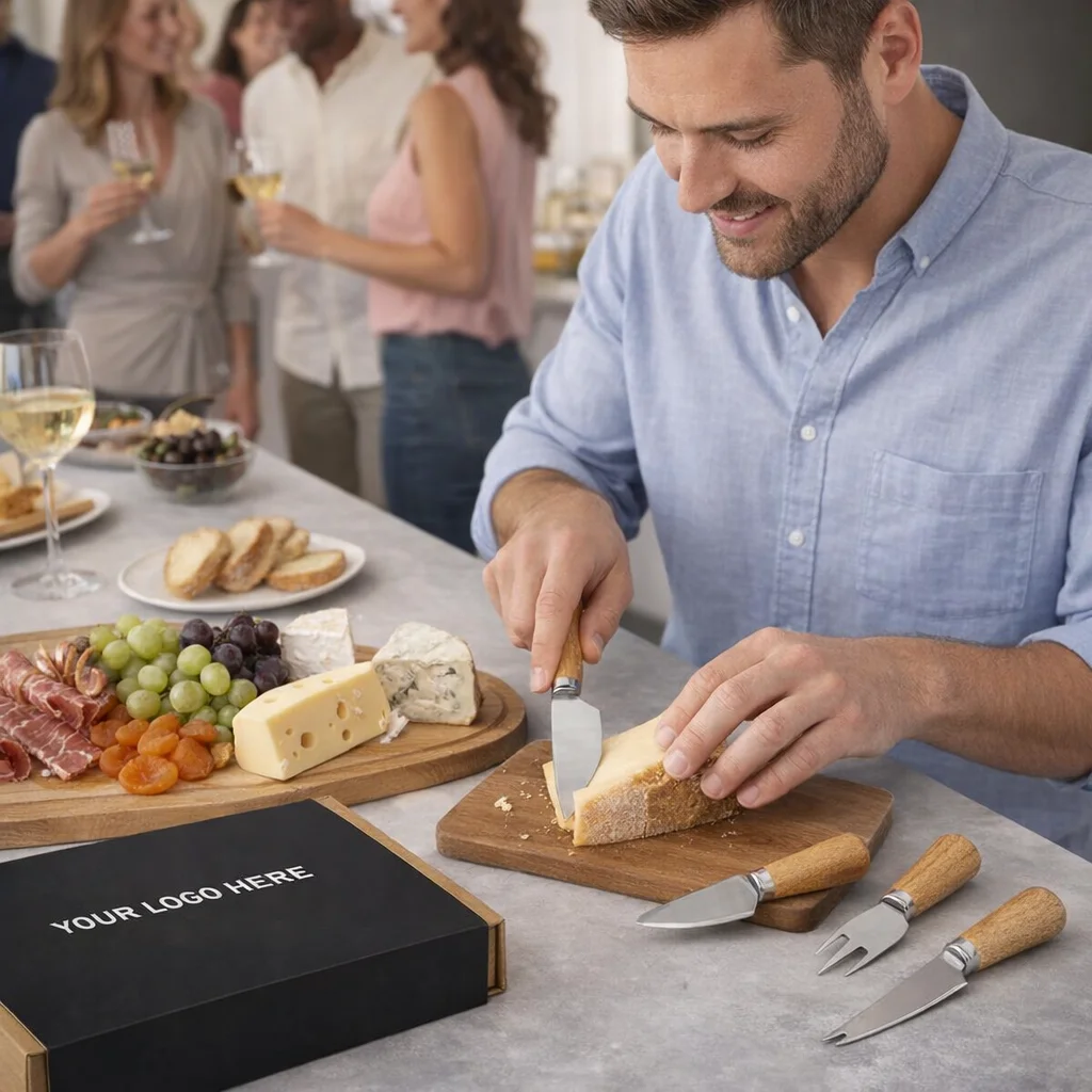 For businesses looking to impress clients or elevate their event merchandise, the Keepsake Cheese Knife Set is an exceptional choice. This functional set includes four uniquely shaped cheese knives and utensils, each designed to enhance the cheese-tasting experience. With durable acacia wooden handles and sturdy stainless steel blades, these knives not only perform well but also add a touch of elegance to any gathering.