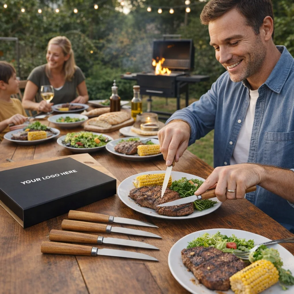 Presented in a natural gift box adorned with a branded black sleeve, this set makes for an impressive gift that is perfect for corporate events, client appreciation, or special occasions. By choosing the Keepsake Steak Knife Sets, you’re opting for a sophisticated and practical gift that stands out from generic alternatives. Customise with your logo for a memorable and useful branded gift.