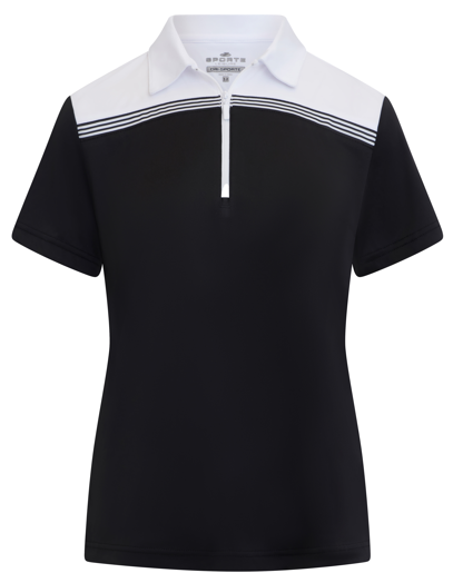 The Womens Edge Stripe Polo delivers with the features listed below. Made with 100% Polyester interlock. Featuring Zip placket.