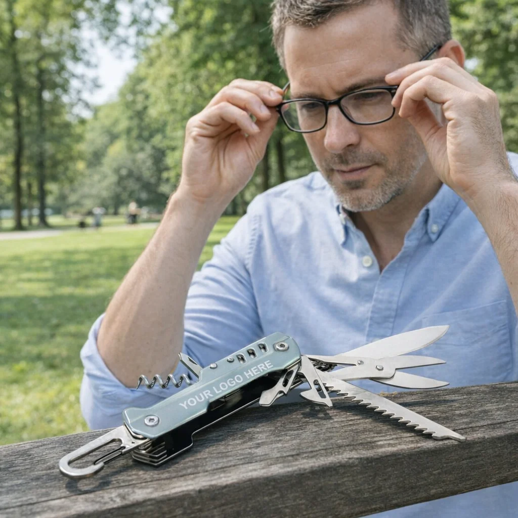 Each Leipzig Multi-Tool comes beautifully packaged in an XD gift box, complete with a robust carry pouch featuring a Velcro closure and a belt loop for easy access. The ability to laser engrave your logo in an oxidised white color means your brand will be front and center, making a lasting impression. This thoughtful and versatile gift is perfect for small businesses looking to elevate their promotional efforts.