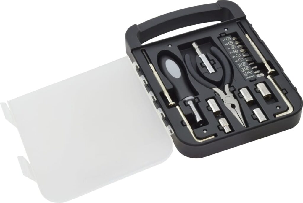 What sets this tool kit apart is its thoughtful organization, allowing users to easily access the tools without the hassle of searching through clutter. It’s not just a tool kit; it’s a statement piece that reflects your brand’s commitment to quality and utility. Customise with your logo for a memorable and useful branded gift.