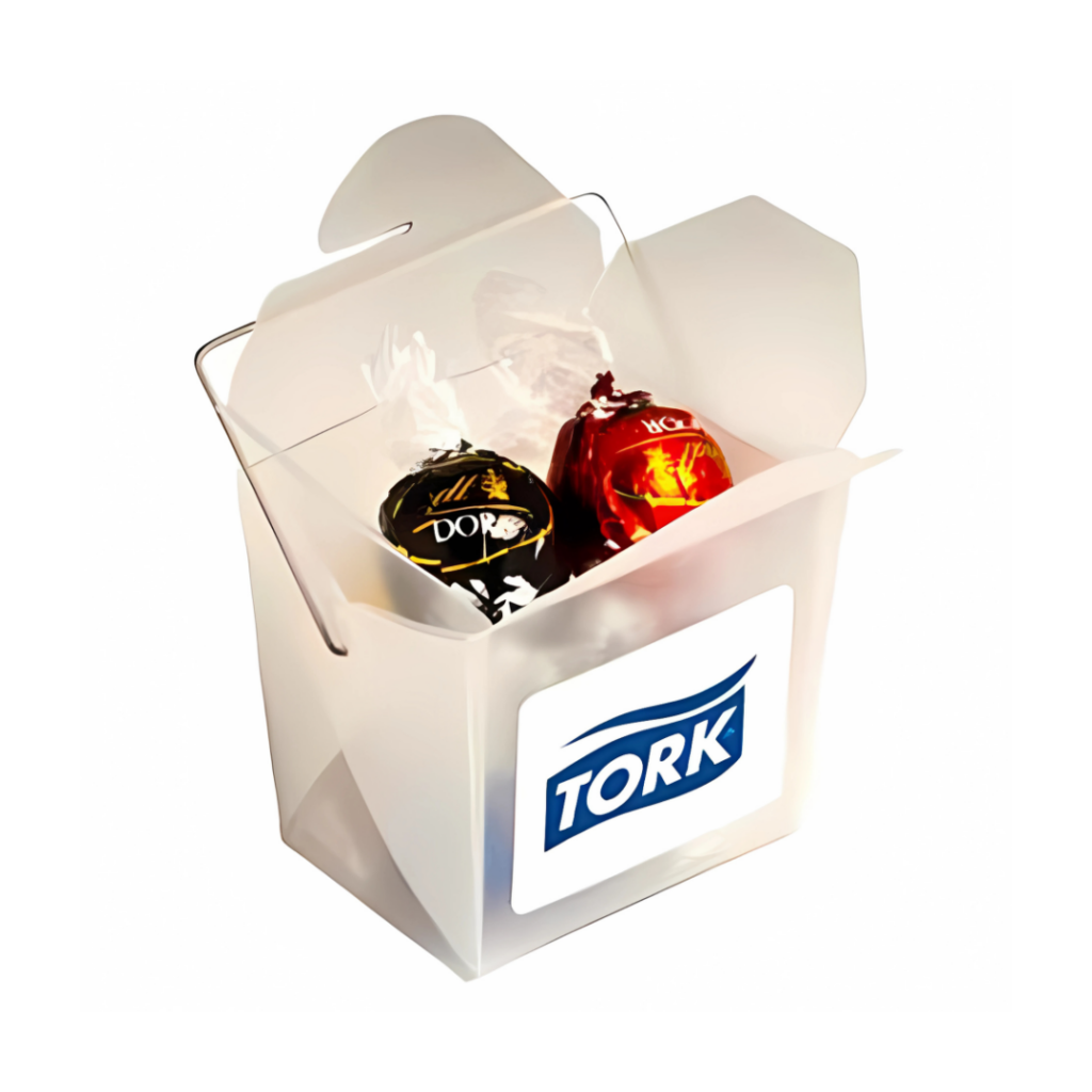 Introducing our classic clear noodle box with a convenient carry handle, an ideal choice for indulging in a sweet treat. This charming box is filled with five delectable Lindt Lindor Balls, celebrated for their irresistibly smooth taste. Whether you’re aiming to impress friends, colleagues, or business associates, this gift is sure to leave a lasting impression.