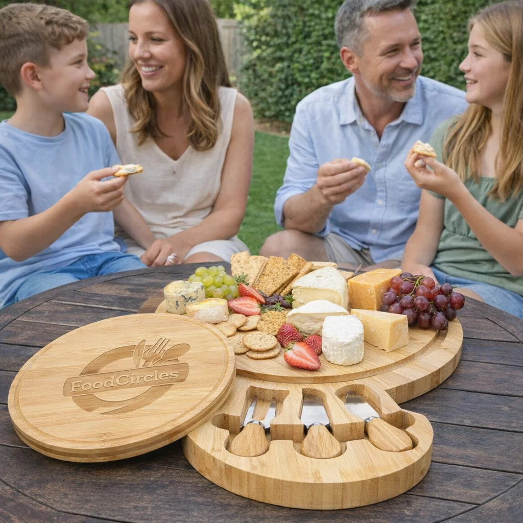 Picture hosting an outdoor gathering or a cozy picnic, where your guests are treated to an exquisite cheese platter presented on the Personalised Bamboo Cheese Board Set. This elegant cheese board not only swivels open to reveal two cheese knives and a cheese fork, but it also adds a touch of sophistication to any event. The thoughtful design ensures that everything is neatly stored inside, making it both functional and stylish.