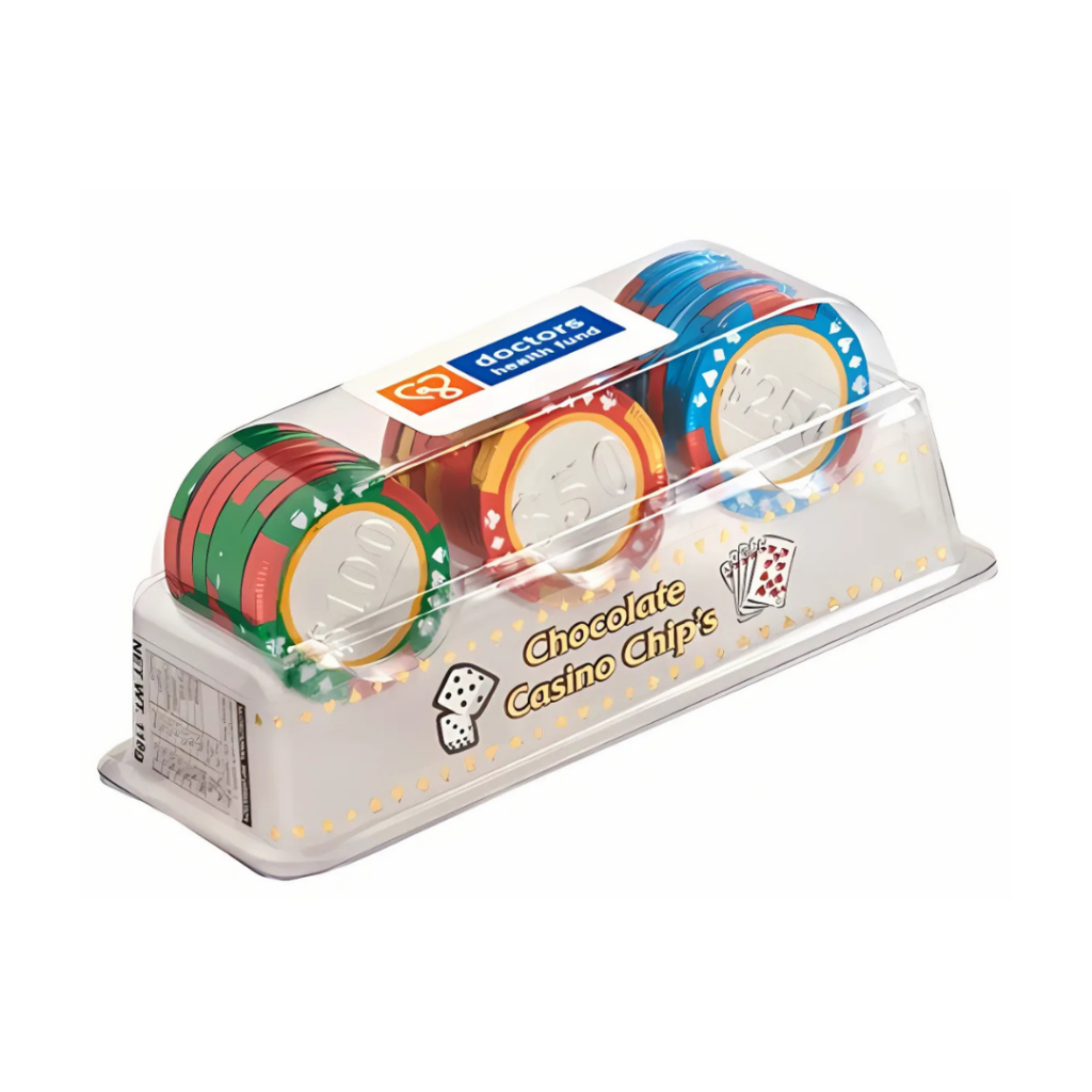 A game of high-stakes cards just wouldn’t be the same without poker chips. That’s why our scrumptious chocolate poker chips are the perfect addition to your next party, event, or night out with your friends. These delectable treats are individually wrapped and come presented on a display set, making them easy to give as gifts. But they’re not just delicious – they’re also a fantastic way to promote your brand and increase brand recognition for your business. They’re a hit at corporate events too.