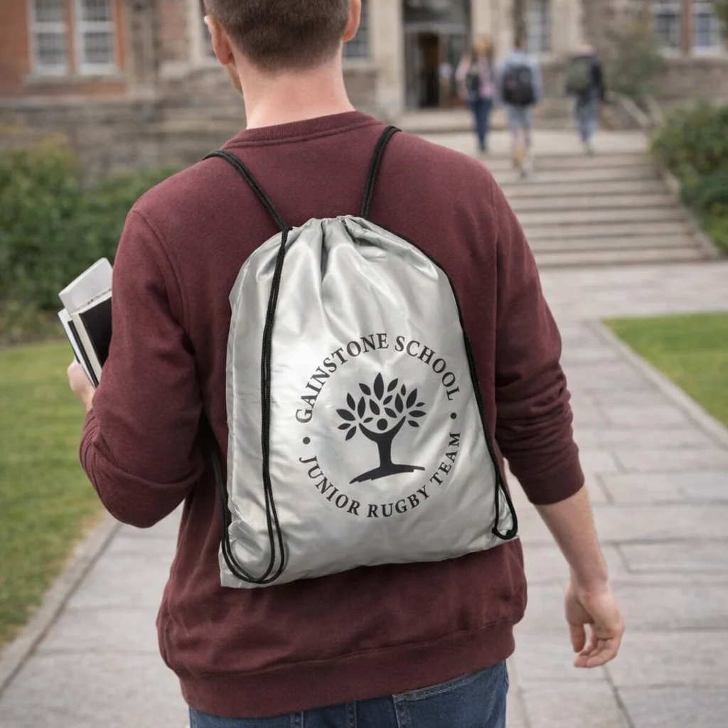 Introducing the Personalised Silver Drawstring Bags, a standout choice for businesses looking to make a memorable impression. These eye-catching drawstring backpacks feature robust woven drawstrings, ensuring durability while providing a stylish flair. Crafted from 190T polyester with a unique metallic coating, they not only serve as practical carriers but also boost your brand’s visibility. What’s more, their sleek design makes them perfect for events, promotional giveaways, or as branded gifts for clients.