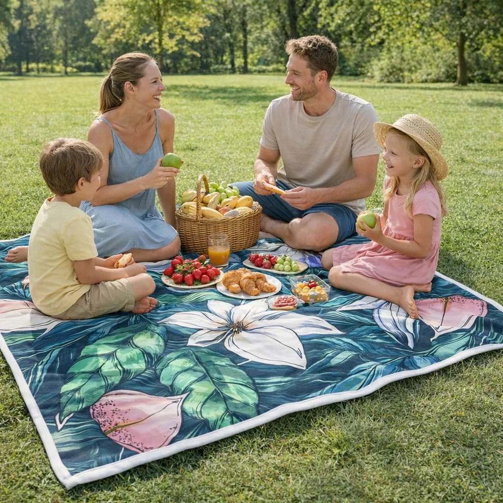 - Generously sized at 1500mm square, ideal for picnics and outdoor gatherings.