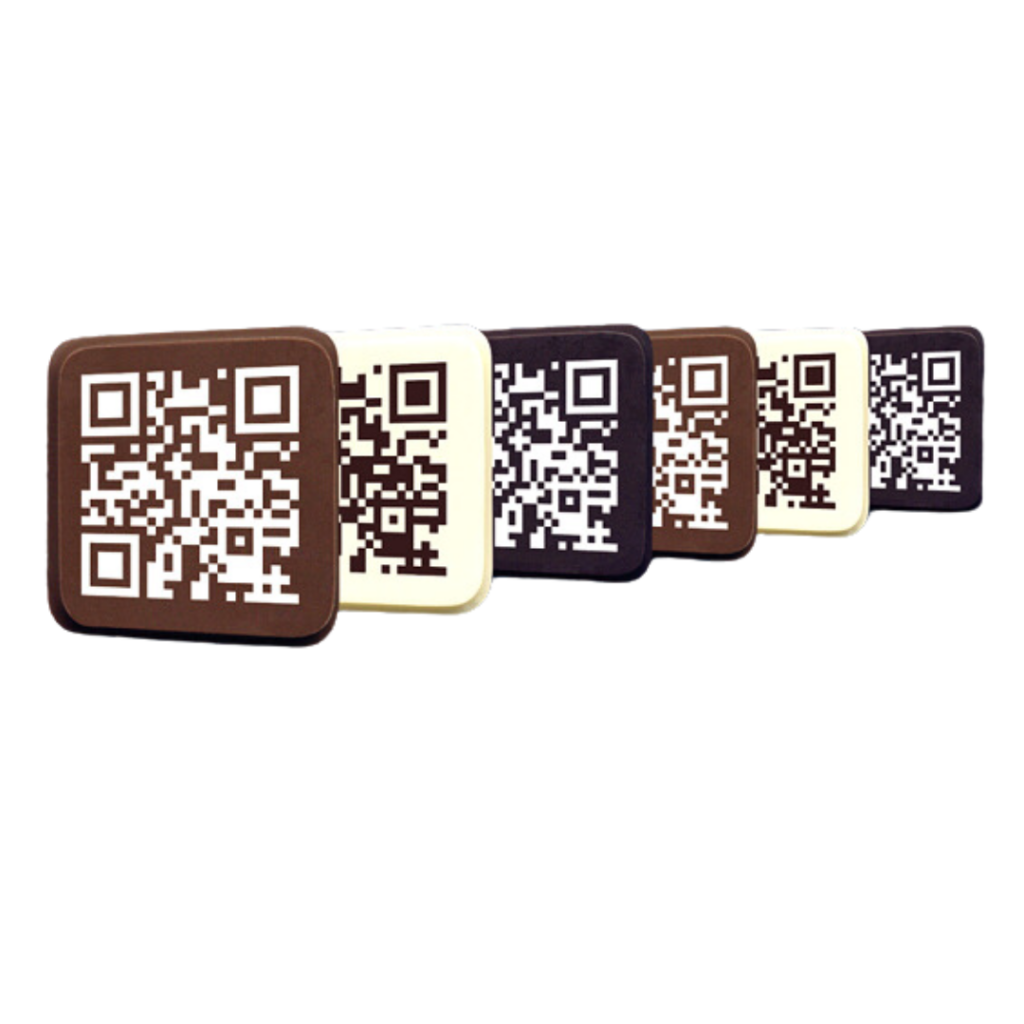 - Chocolate squares featuring a personalized QR code for interactive engagement.