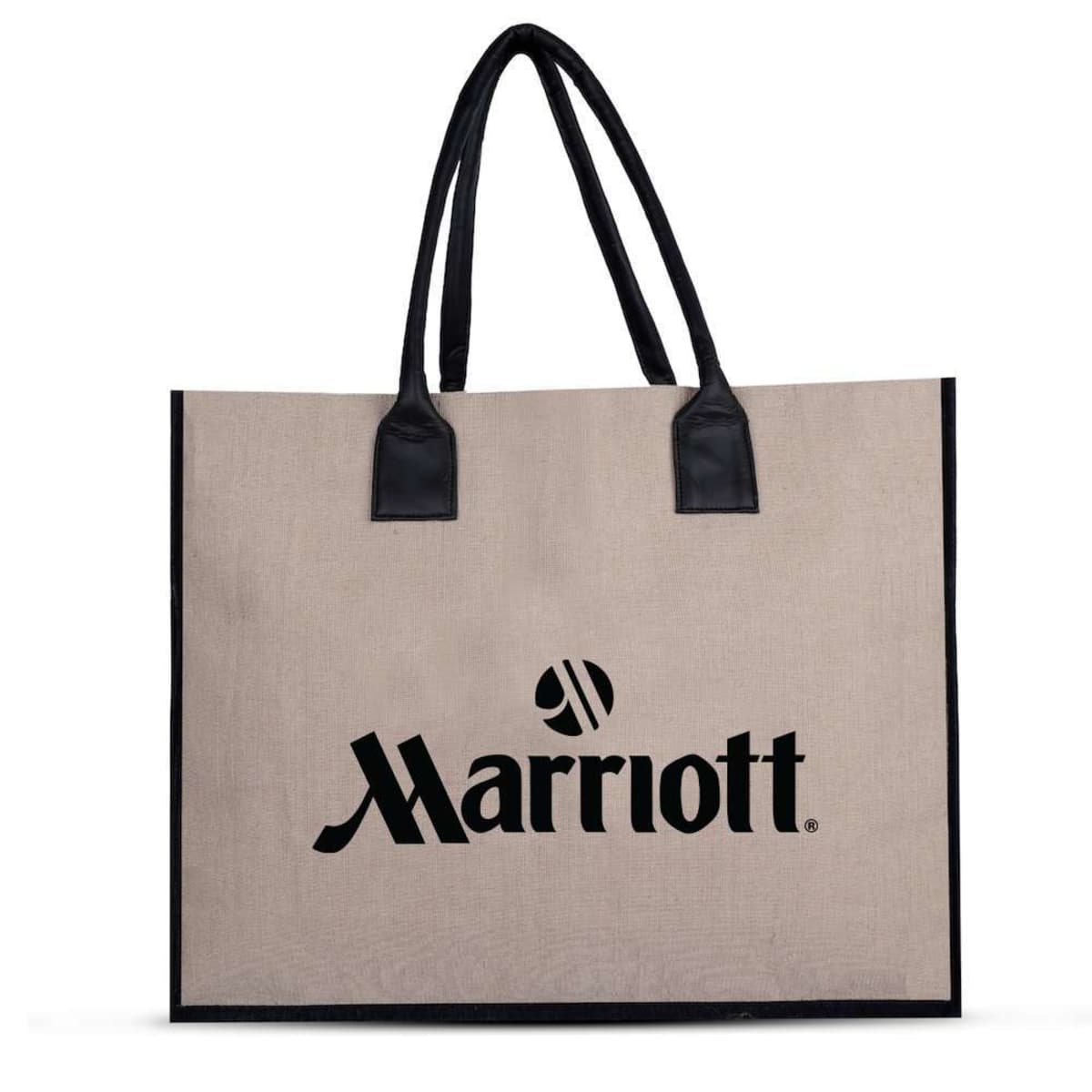 The Ramp Juco Bag is a structured, boutique-style tote made from a blend of 75% jute and 25% cotton, offering a balance of durability and refined design. Built with a spacious base gusset and internal lamination, it holds its shape while carrying everyday essentials. Finished with natural panels, a cotton lining, and faux leather handles, it delivers a more polished look than standard jute bags.
