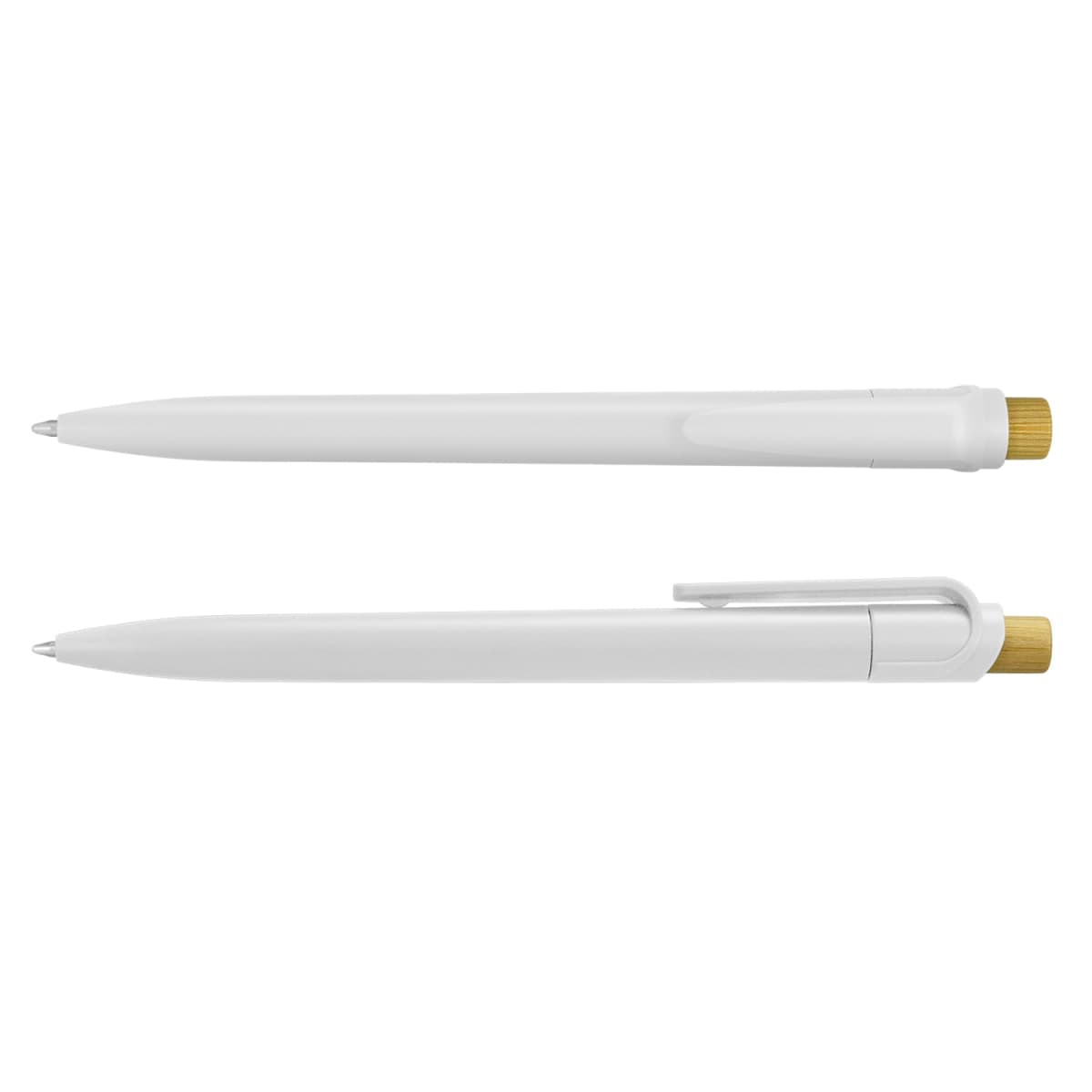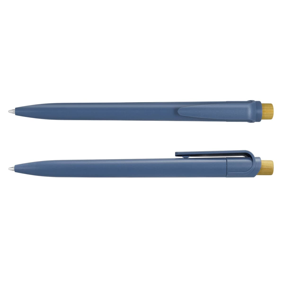 This push-action ballpoint pen blends eco-conscious materials with everyday functionality. Made from recycled ABS plastic with a natural bamboo pusher, it writes smoothly with 1000m of black Dokumental ink and features a wide clip for secure attachment. Optional pen sleeves offer a polished presentation for gifting or branding.