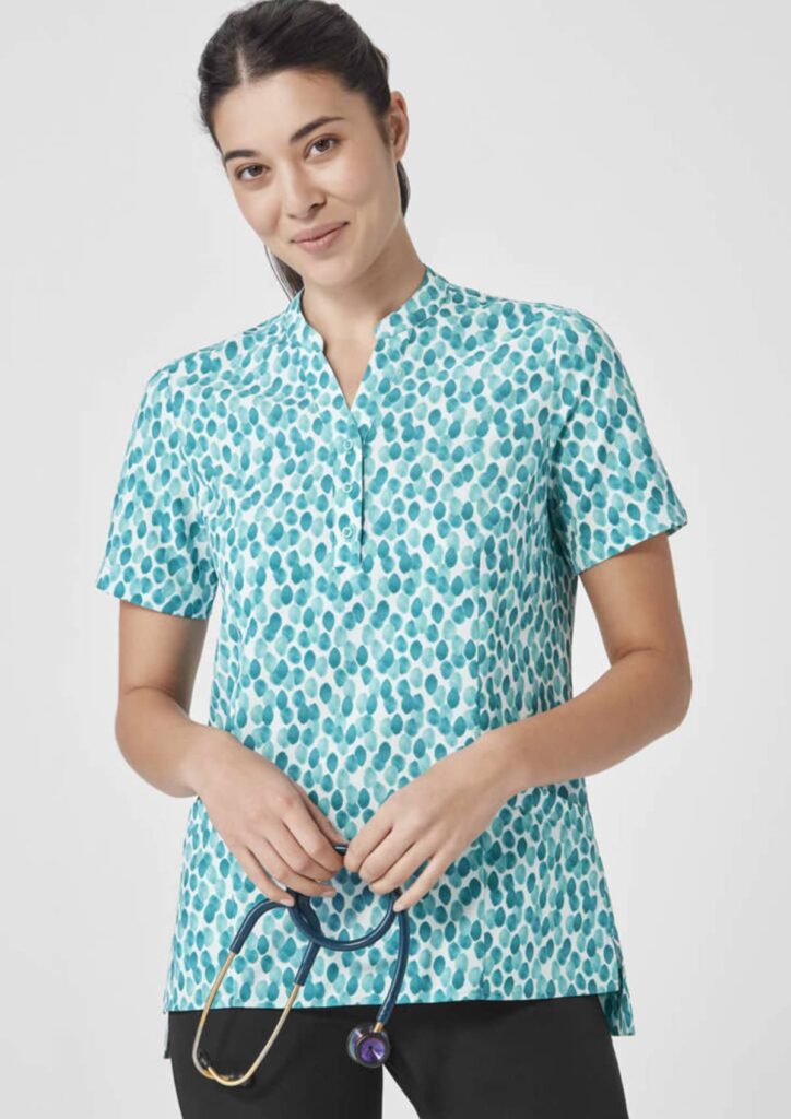 Perfect for professionals in hospitality, healthcare, or corporate settings, the Stardust Print Tunic offers elegance and practicality in one versatile garment.