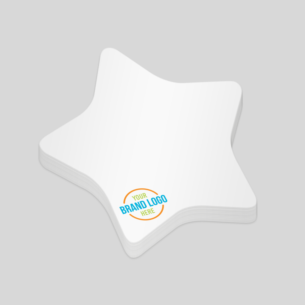 - Sticky note set in a distinctive star shape, perfect for creative branding.