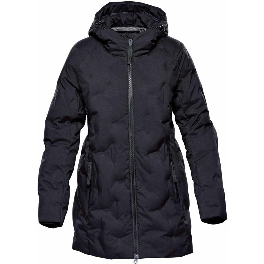 Boost your brand’s presence with the Stormtech Women’s Stockholm Parka, a perfect blend of style and functionality. This three-quarter length quilted parka is designed for the modern woman who values both aesthetics and performance while navigating city life. The fashion-forward, contoured fit ensures you look great, while the PFC-free water repellent finish and internal back heat reflective mesh keep you comfortable and protected from the elements.