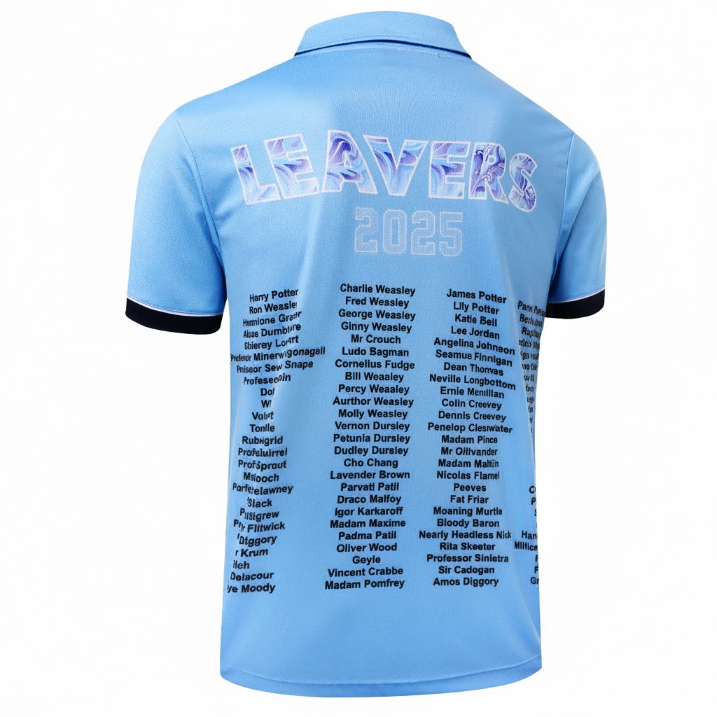 Buy this School Leavers Sublimation Polo when you want a made-to-order leavers design with flexible style options, multiple logo finishes, and sizing that supports a full year-level rollout.